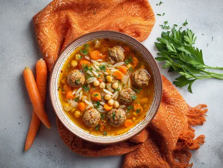 Kichererbsen-Nudeleintopf mit Hackbällchen