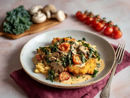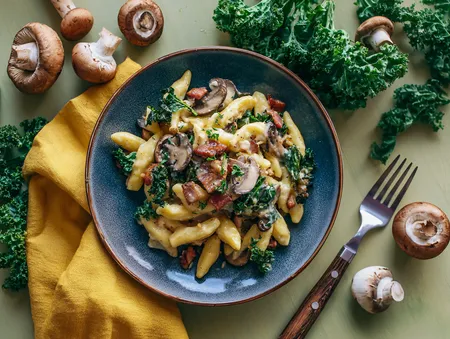 Samstag: Cremige Spätzle-Pfanne mit Spinat und Champignons